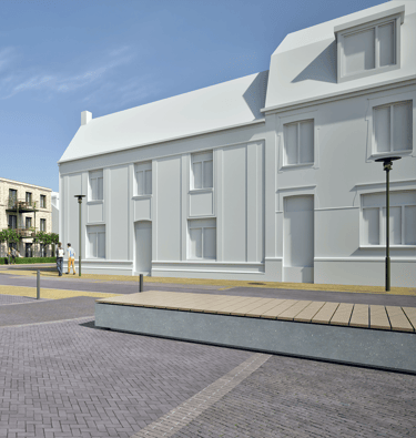 De tekeningen zijn met recht ‘artist impressions’ waarin de illustrator zich soms wat vrijheden gunt. De reële kleur van gevels, schilderwerk en dakbedekkingen kunnen hiervan afwijken.