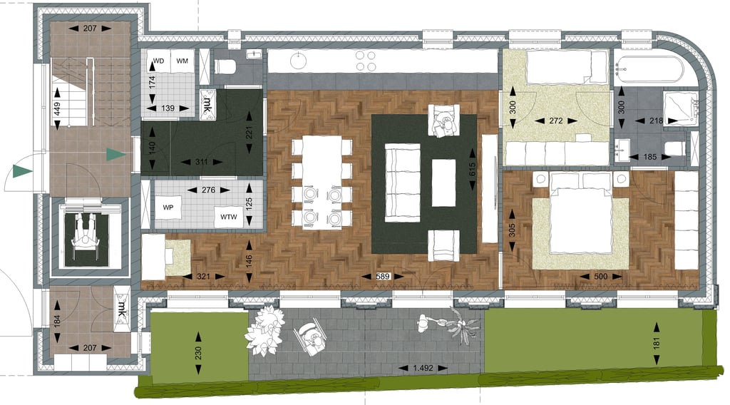Dit gelijkvloerse appartement op de begane grond combineert comfort, toegankelijkheid en modern woonplezier – ideaal voor diegenen die ruim, stijlvol en zorgeloos willen wonen. De lichte open-plan leefruimte biedt een naadloze overgang tussen de woonkamer, eetgedeelte en een gezellige werkhoek – perfect voor hobby’s, lezen of rustig thuiswerken. Grote ramen zorgen voor volop daglicht en geven toegang tot een fraai aangelegde tuin aan de straatzijde: een heerlijke plek om buiten te zitten en contact te houden met de omgeving.