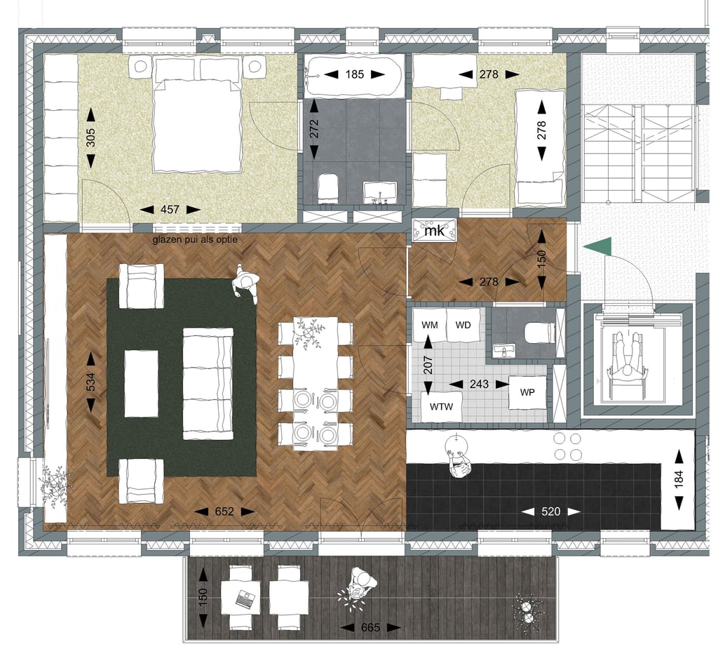 Een aparte technische ruimte met wasvoorzieningen zorgt voor extra praktisch gemak. Bovendien hebben bewoners uiteraard toegang tot de fraai aangelegde, gedeelde binnenhof – een groene ontmoetingsplek voor rust, contact en ontspanning. Deze woning biedt het beste van comfortabel, stijlvol én verbonden wonen.