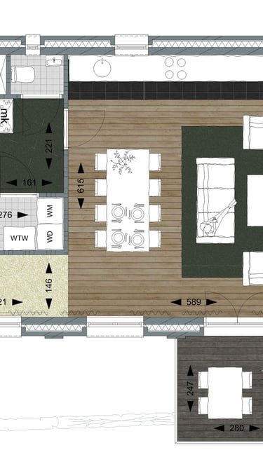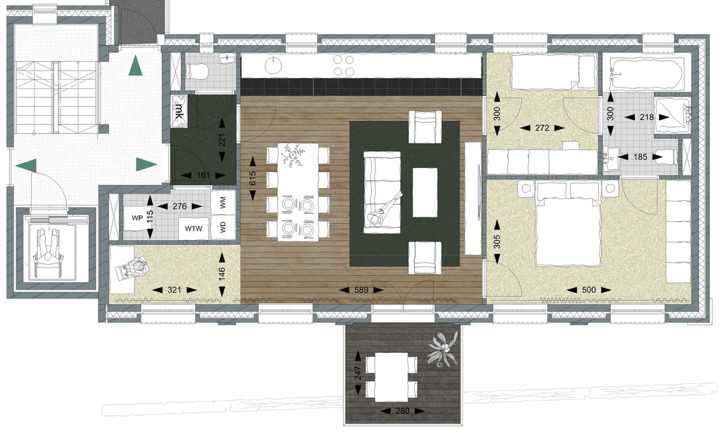 De lichte open-plan leefruimte verbindt de woonkamer, het eetgedeelte en een gezellige werkhoek op natuurlijke wijze – perfect voor hobby’s, lezen of rustig thuiswerken. Grote ramen zorgen voor een overvloed aan daglicht en bieden toegang tot een ruim balkon met schitterend uitzicht op de Oude Markt van Waubach: een sfeervolle plek waar je zowel het levendige dorpsleven als het buitenleven optimaal beleeft.