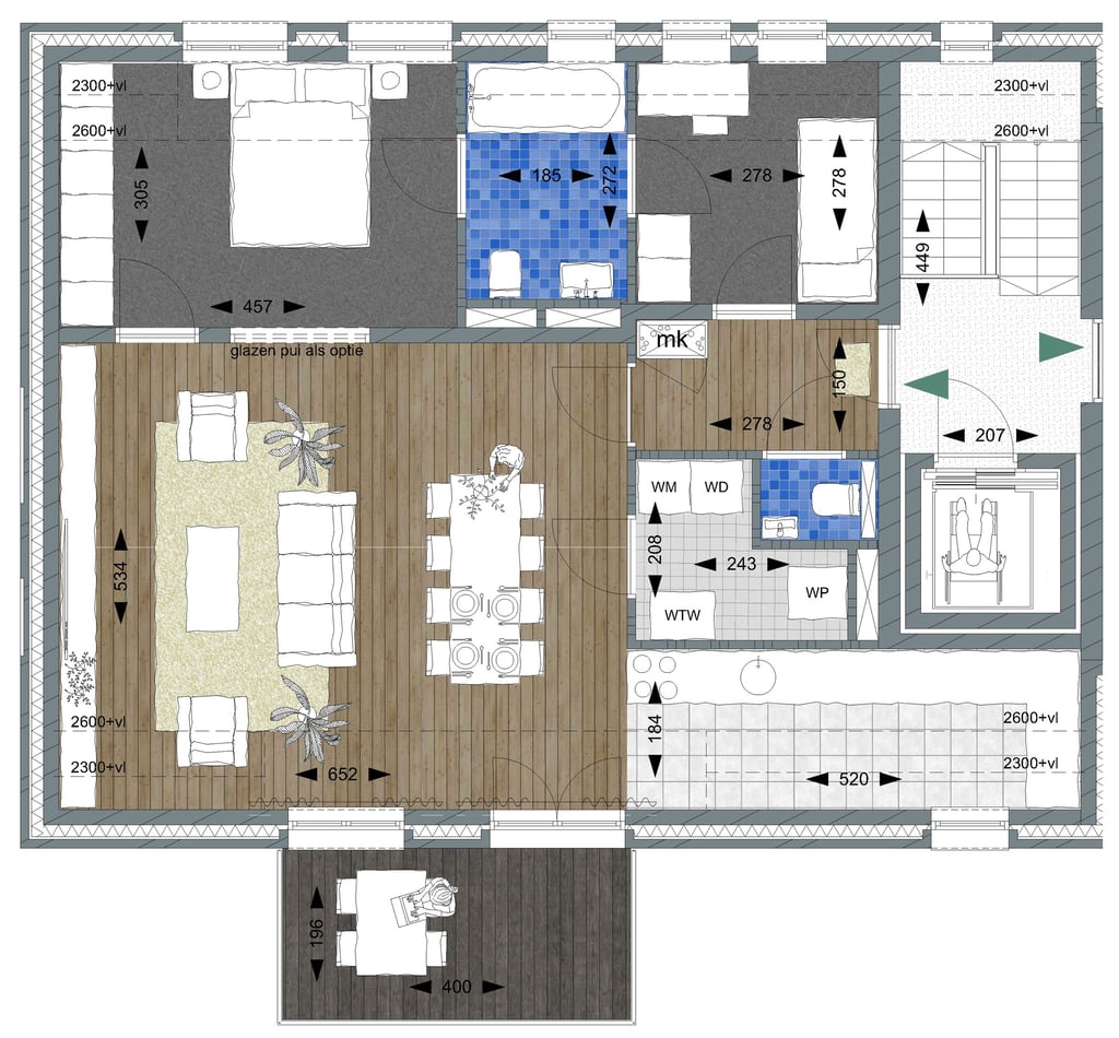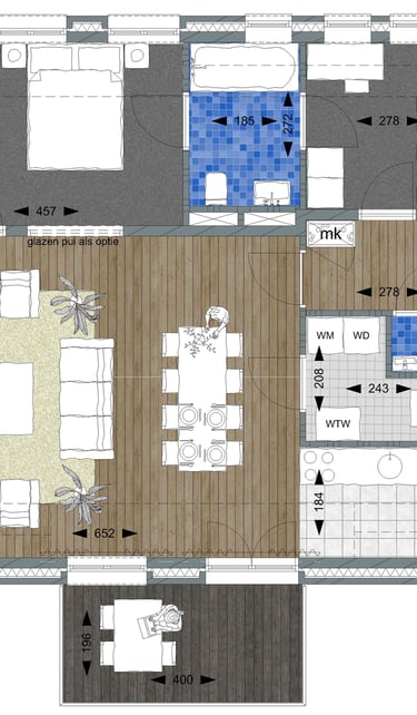Met twee volwaardige slaapkamers, een stijlvolle badkamer met inloopdouche en een volledig drempelloze afwerking is dit appartement tot in de puntjes voorbereid op comfortabel en toekomstgericht wonen. Brede doorgangen en een praktische indeling maken het woonplezier compleet.