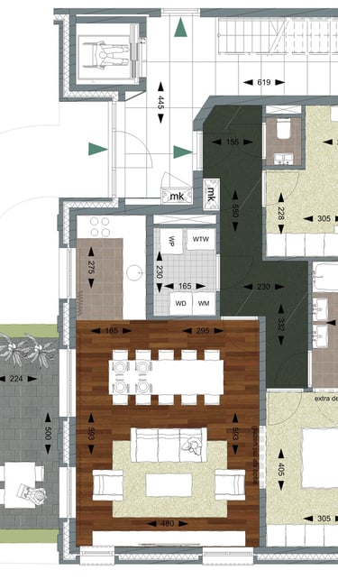 Dit appartement op de begane grond in blok 2, direct grenzend aan de semi-private groene hof, combineert comfort, toegankelijkheid en modern woonplezier – ideaal voor senioren die ruim, stijlvol en zorgeloos willen wonen. Hier geniet je van privacy en rust, terwijl het gezellige dorpsleven van Waubach binnen handbereik is.