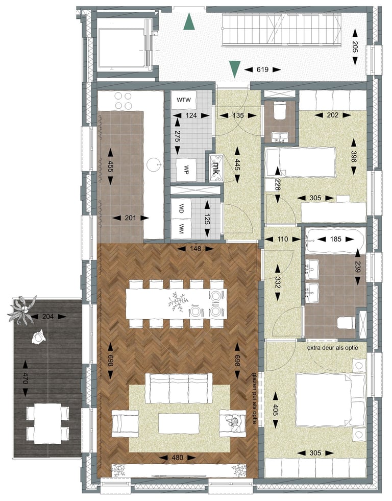 Dit appartement op de eerste verdieping in blok 2, direct grenzend aan de semi-private groene hof, biedt rust, privacy en modern wooncomfort. Ideaal voor wie zorgeloos, stijlvol en levensloopbestendig wil wonen, terwijl het dorpsleven van Waubach binnen handbereik ligt.